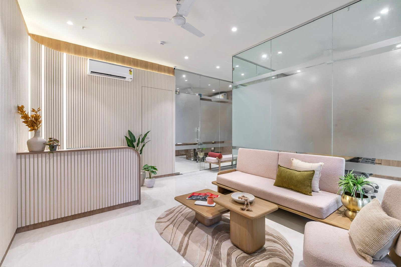 Discover a workspace that redefines elegance, crafted to perfection by The Arch Studio. This stunning space combines warm wood tones with rich colors, creating an environment that’s both elegant and inviting. Every detail, from the lavish furnishings to the carefully curated decor, exudes opulence and refined taste. Experience a workspace where functionality meets grandeur. Elegant and inviting, this office by The Arch Studio features warm wood tones, sleek glass partitions, and cozy furnishings, creating a perfect blend of style and comfort for a productive workspace.