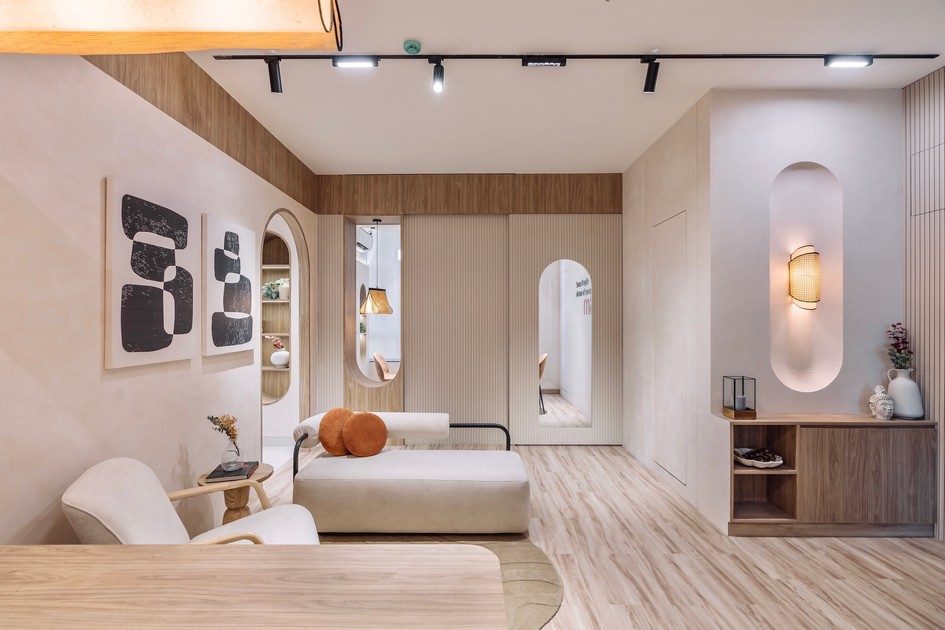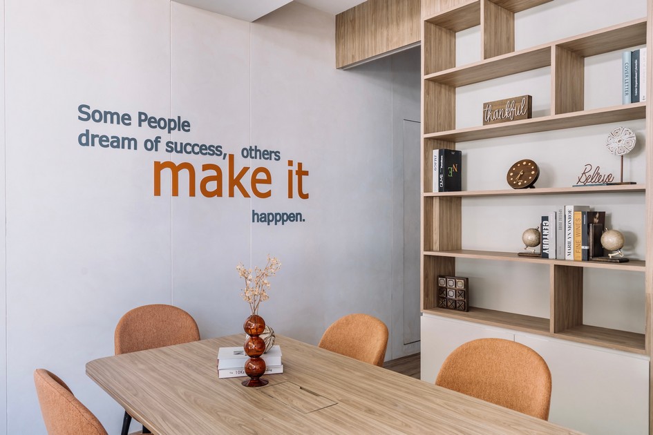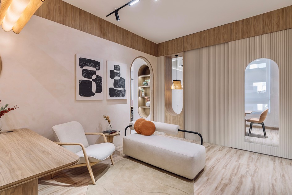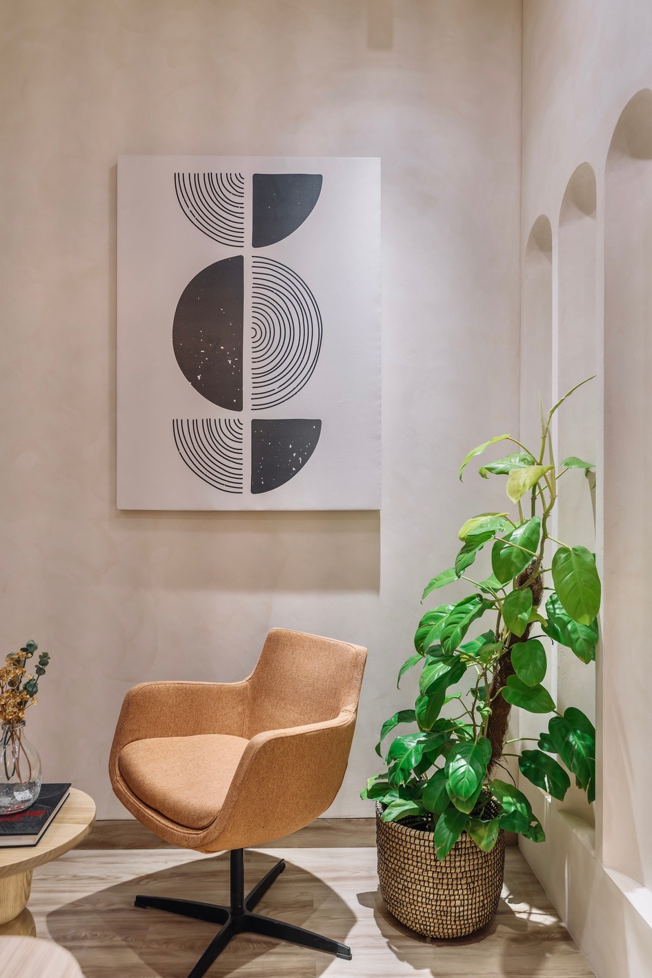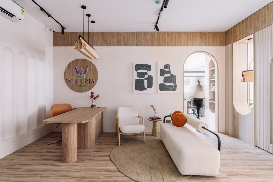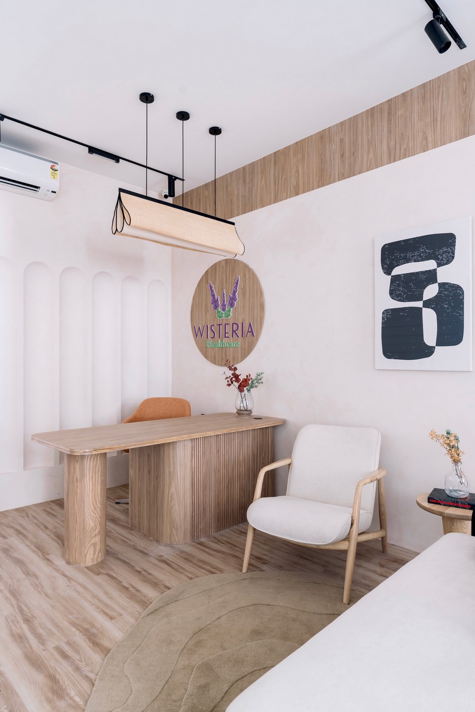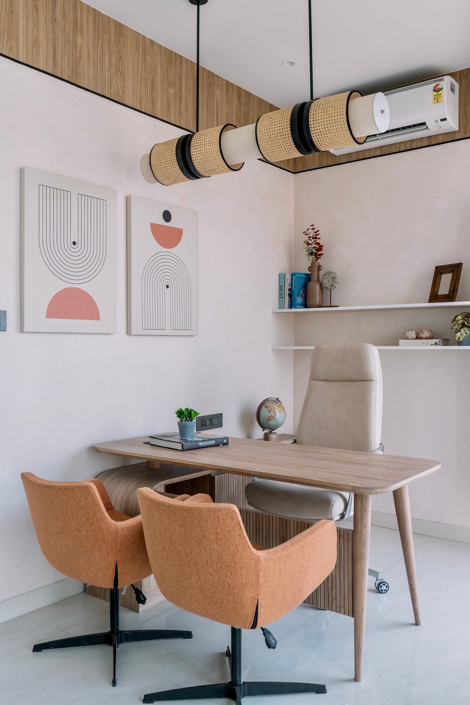 Inspired by a capsule,this pharma company’s workspace looks so chic!The arched elements depicting a capsule and vibrant colors create a stimulating environment for creativity and productivity.From the ergonomic furniture to the innovative lighting,every detail is thoughtfully designed.The meticulous use of wood and earthy tones creates an atmosphere that fosters productivity and tranquility.A true testament to the marriage of aesthetics and functionality.