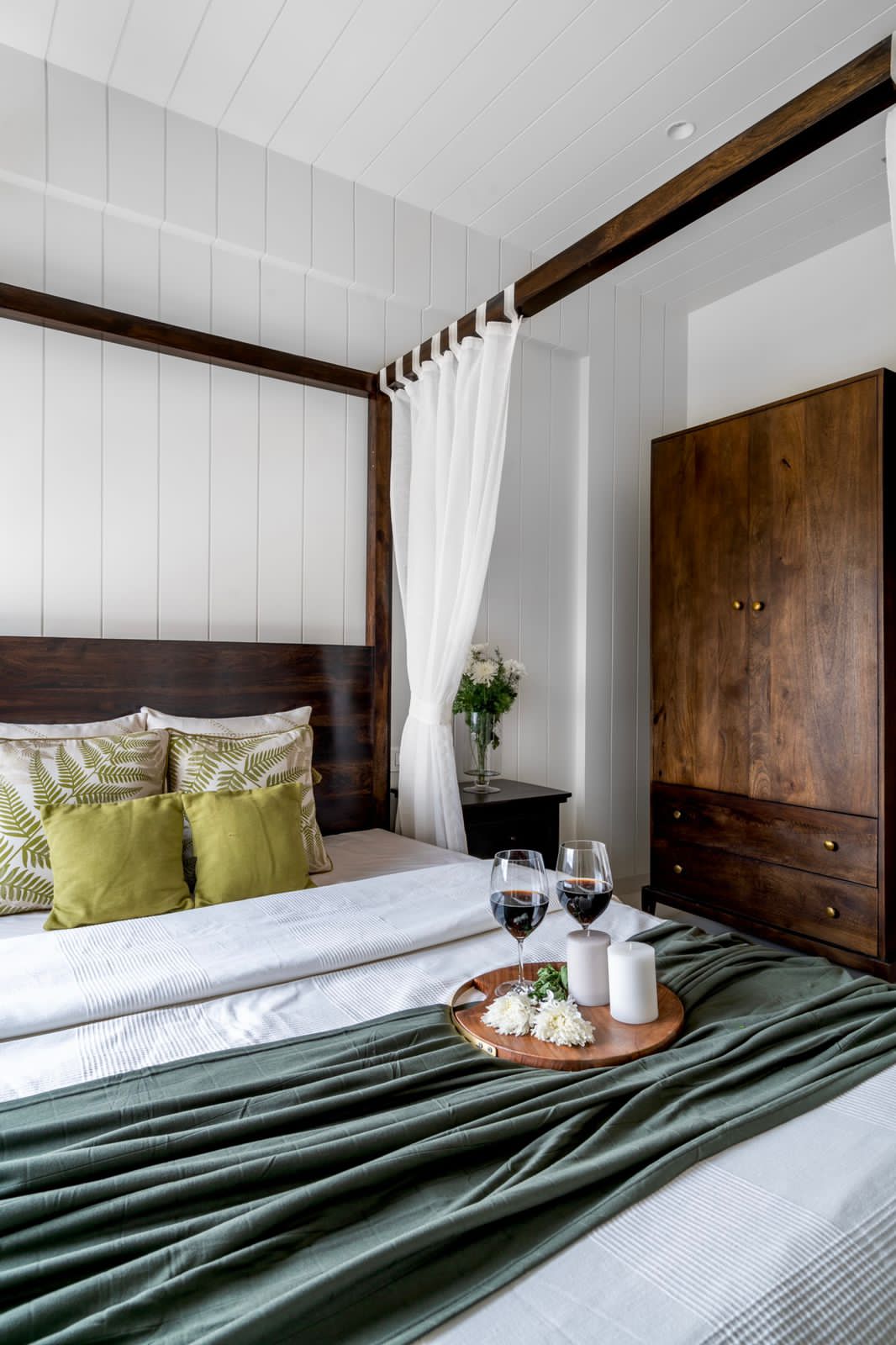 The natural filtered light aided in creating a serene environment. Soft weaved textures add to the simplicity of the whole look. The aim was to create a modern,